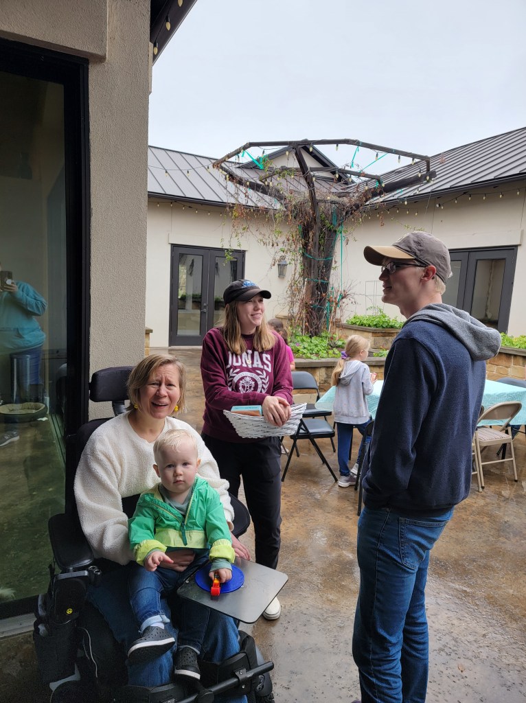 But I just got a new travel wheelchair: Majestic IQ-9000 from Comfy-Go Mobility. I can’t tell u yet how future trips will go, but I can tell u that for the first time, I’m excited to use my chair, & I felt my anxiety decrease when my new travel w/c arrived: It isn’t wobbly, drives smoother than any other chair I have used (it starts/stops smoothly – if Mark is driving me with power on & suddenly stops, I don’t get knocked around), & it has a remote (which may not be a big deal, & may mean something else to Mark, but to me, the remote means that after 20 years, Mark & I can finally hold hands as we “walk”!) I cried (with happiness) when I realized this! My chair also has a lock feature that every wheelchair needs (so kids can turn it on & off, & play with the joystick, but can’t move the chair). This wheelchair has power recline, a “real” horn, & it makes a beeping noise as I back up. (Kinda a cool safety feature cuz people are warned, but we figured out how to turn it off – thank u, YouTube – so I could use it in a quiet place, like a church!)